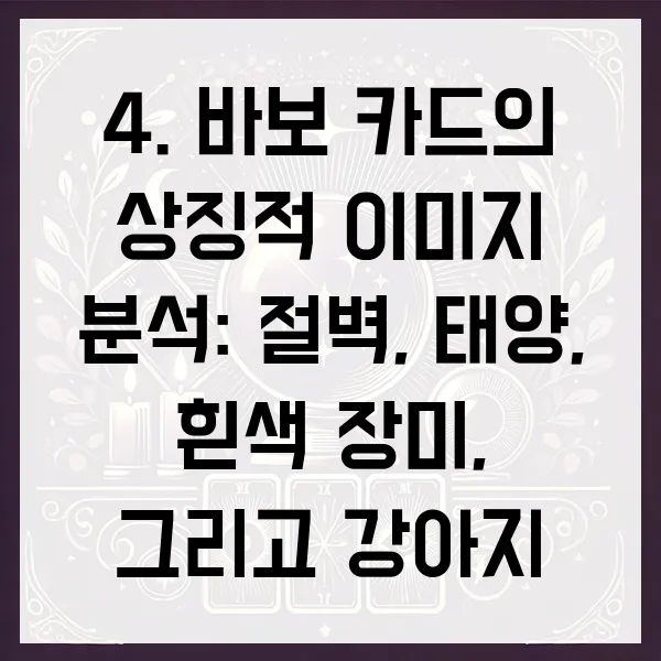 4. 바보 카드의 상징적 이미지 분석: 절벽, 태양, 흰색 장미, 그리고 강아지