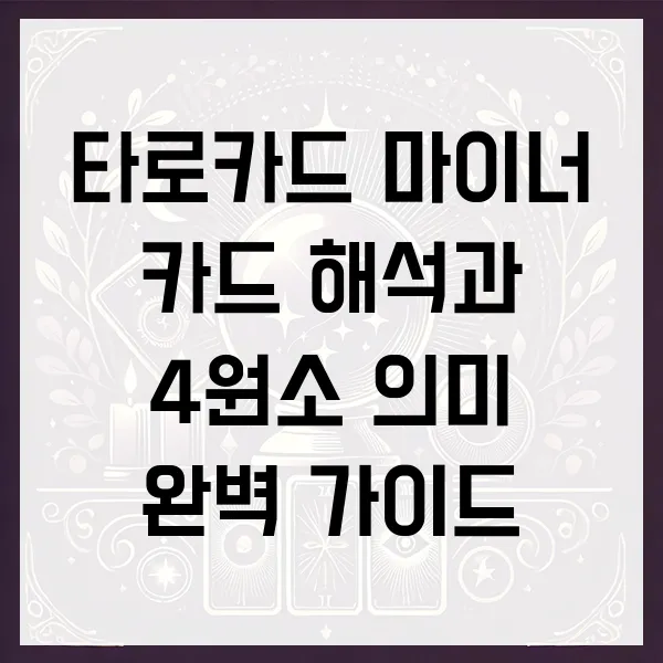 타로카드 리딩의 핵심, 마이너 아르카나! 일상의 크고 작은 사건들을 꿰뚫어 보는 마이너 카드 해석과 4원소(컵, 검, 지팡이, 펜타클)의 심오한 의미를 파헤쳐보세요. 삶의 방향을 제시하는 나침반이 되어줄 타로의 세계, 지금 시작합니다! 이 가이드를 통해 타로 마스터로 향하는 여정에 한 발짝 다가서세요! #타로카드 #마이너아르카나 #4원소 #타로해석 #타로점